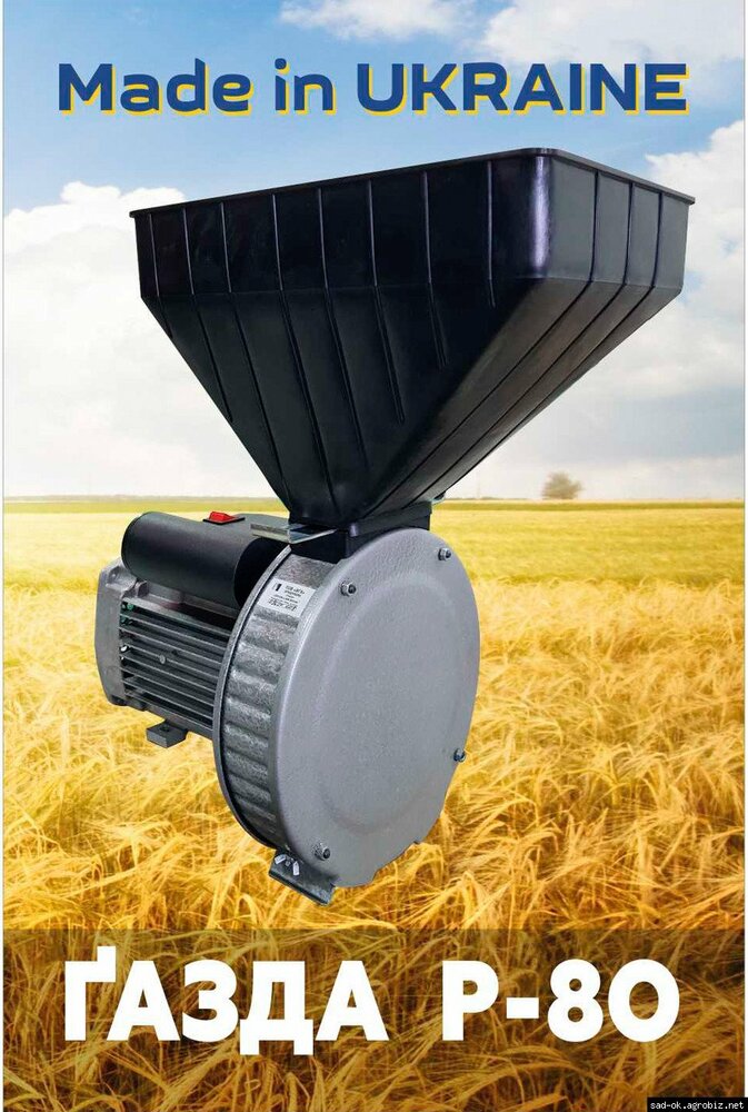 Зернодробилка «ГАЗДА Р80» (зерно пшеницы, ржи, ячменя и т.д.) - это высококачественный украинский прибор, легкий в использовании и эффективный при переработке сельхозкультур. Двигатель аппарата электрический, с кнопкой вкл / выкл.