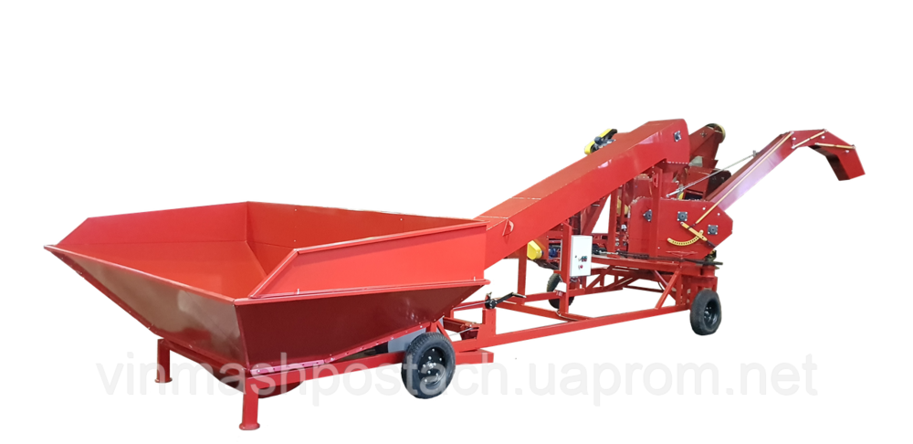 Зернонавантажувач Контейнерний ЗЗНК-150 – спроектований для полегшення та зручності завантаження зернових, бобових та масличних культур у контейнери. Призначений для механізації вантажно-розвантажувальних робіт на елеваторах і зерноскладах. Завантажує морські контейнери на звичайному зерновому току без спеціалізованого пристосування за лічені хвилини.