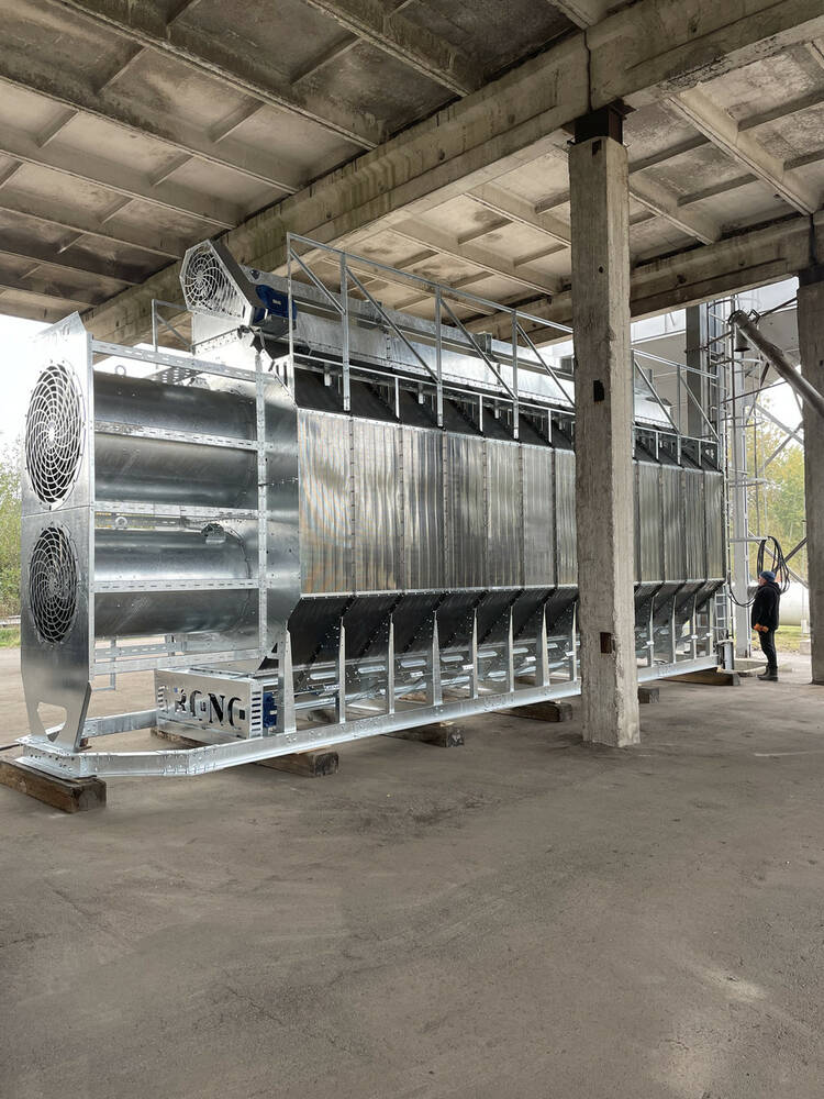 Внутрішні та зовнішні стінки колон виготовлені у вигляді решіт із відповідною перфорацією, що дозволяє ефективно продути шар зерна (36см), підтримуючи температуру, задану оператором.