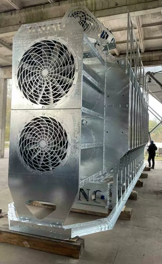 2. Несуче шасі виготовлене з оцинкованої рами. Шасі забезпечує жорсткість конструкції сушарки та збалансовану роботу шнеків. У стандартній комплектації зерносушарка комплектується опорними ніжками, що дозволяє виконувати її монтаж на рівну бетонну основу без додаткових конструкцій.