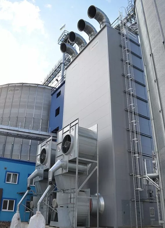 Стаціонарні проточні зерносушарки RIELA мають такі особливості: