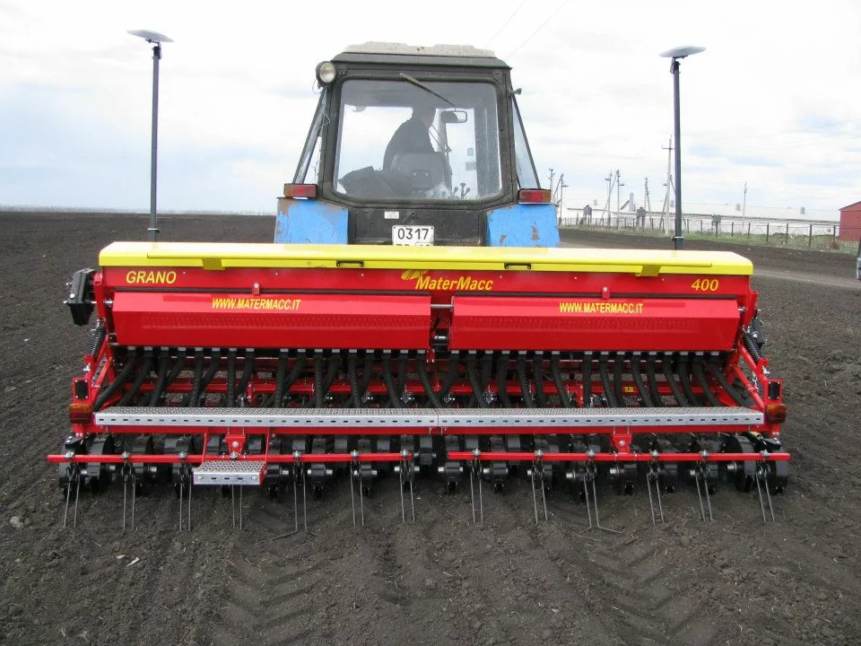 Навісна зернова сівалка від італійської компанії MaterMacc GRANO 400F призначена для посіву зернових культур, рапсу, сої, люцерни по підготовленому ґрунту, з одночасним внесенням сухих мінеральних добрив.