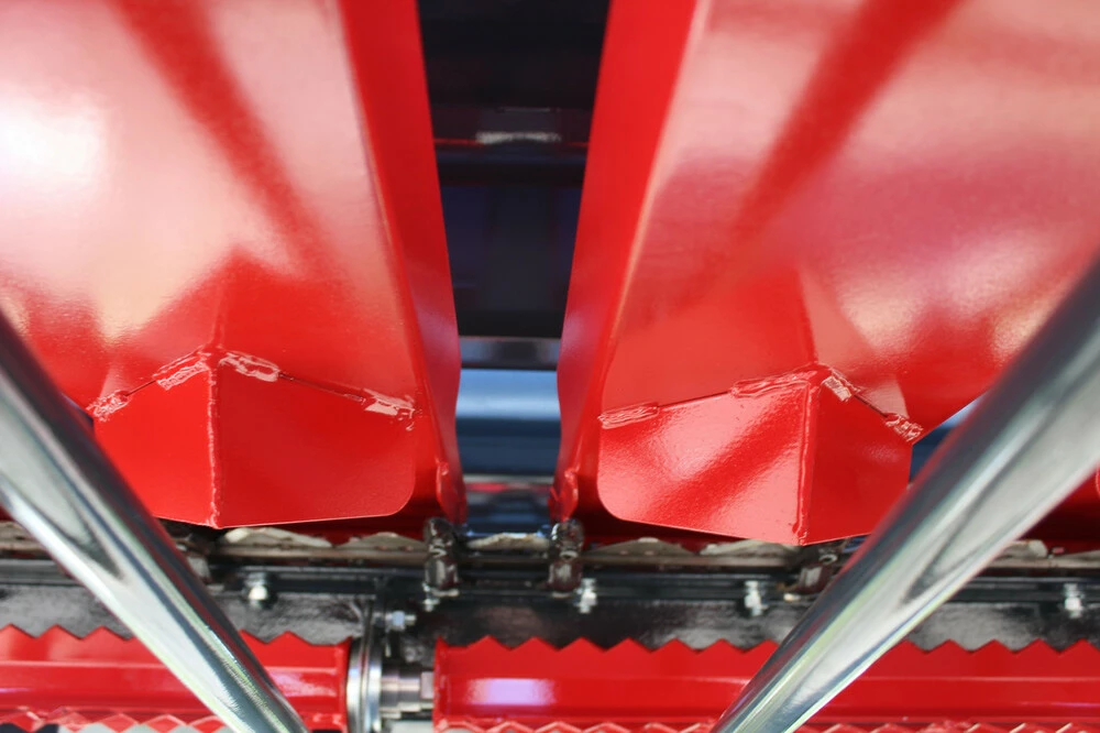 • Положення обтічника (відбійника) плавно регулюється від 160 до 450 мм, що дозволяє зберегти голівки соняшника цілими, що важливо при збиранні кондитерських сортів.