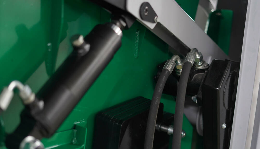 Вся система зрізу, включаючи привід, виготовлена ​​з високоякісних компонентів, всі компоненти системи зрізу, що застосовуються, виконані зі спеціальної зносостійкої сталі, що гарантує мінімальні втрати при збиранні врожаю.