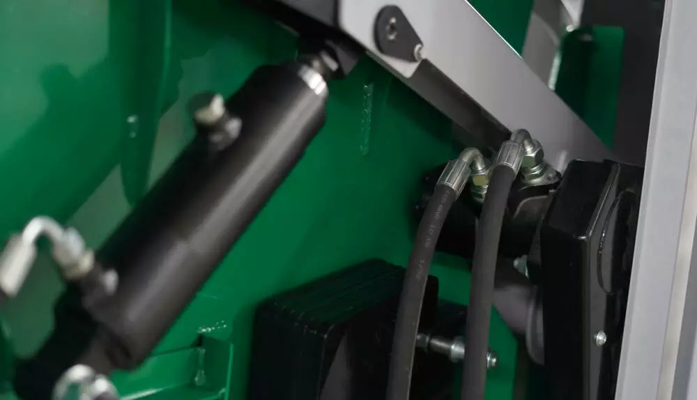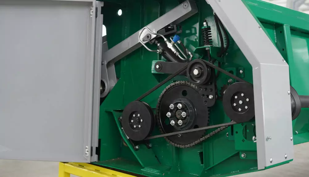Вся система зрізу, включаючи привід, виготовлена з високоякісних компонентів, всі компоненти системи зрізу, що застосовуються, виконані зі спеціальної зносостійкої сталі, що гарантує мінімальні втрати при збиранні врожаю.