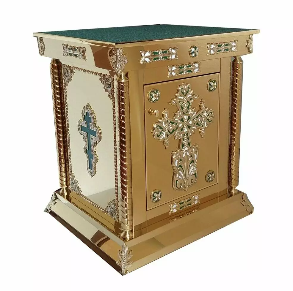 Майстерня «Фавор» виготовляє та реалізує жертовники храмів різних форм, розмірів та стилів. У нашому магазині ви можете підібрати жертовник з колонами, карбуванням, литими елементами, кіотом, куполами, іконою. Для облаштування нової церкви рекомендуємо купувати одночасно і церковні престоли, виготовлені та оформлені подібним чином.