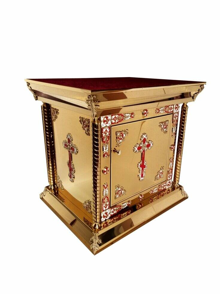 Майстерня «Фавор» виготовляє та реалізує жертовники для храмів різних форм, розмірів та стилів. У нашому магазині ви можете підібрати жертовник з колонами, карбуванням, литими елементами, кіотом, куполами, іконою. Для облаштування нової церкви рекомендуємо купувати одночасно і церковні престоли, виготовлені та оформлені подібним чином.