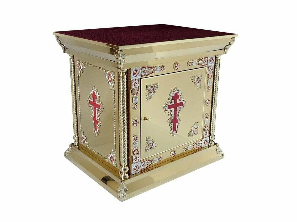 Майстерня «Фавор» виготовляє та реалізує жертовники для храмів різних форм, розмірів та стилів. У нашому магазині ви можете підібрати жертовник з колонами, карбуванням, литими елементами, кіотом, куполами, іконою. Для облаштування нової церкви рекомендуємо купувати одночасно і церковні престоли, виготовлені та оформлені подібним чином.