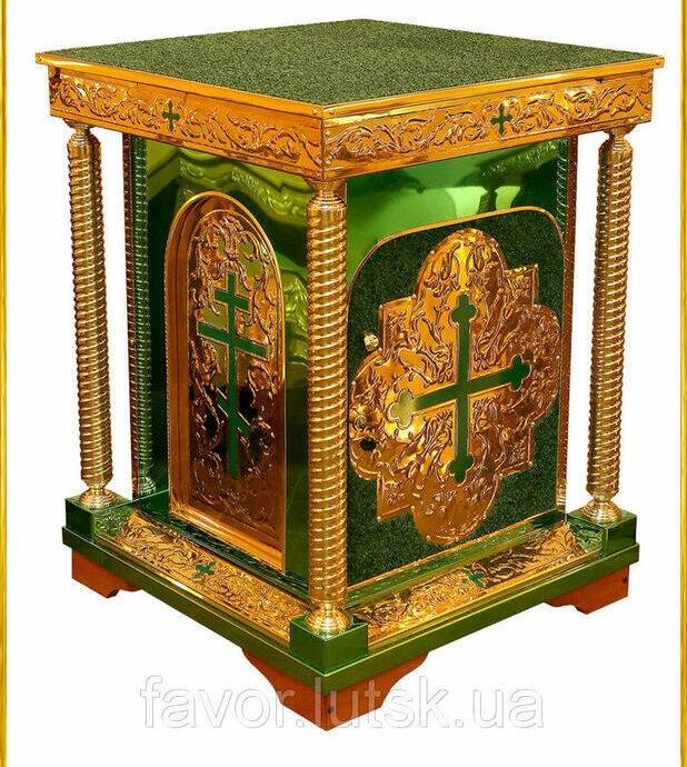 Майстерня «Фавор» виготовляє та реалізує жертовники для храмів різних форм, розмірів та стилів. У нашому магазині ви можете підібрати жертовник з колонами, карбуванням, литими елементами, кіотом, куполами, іконою. Для облаштування нової церкви рекомендуємо купувати одночасно престоли, виготовлені та оформлені подібним чином.