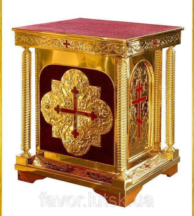 Майстерня «Фавор» виготовляє та реалізує жертовники для храмів різних форм, розмірів та стилів. У нашому магазині ви можете підібрати жертовник з колонами, карбуванням, литими елементами, кіотом, куполами, іконою. Для облаштування нової церкви рекомендуємо купувати одночасно престоли, виготовлені та оформлені подібним чином.