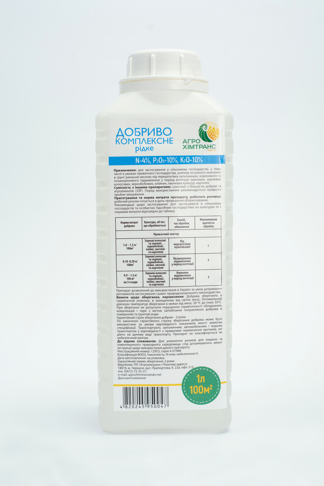 Склад: N - 4%, P2O5 - 10%, K2O - 10%