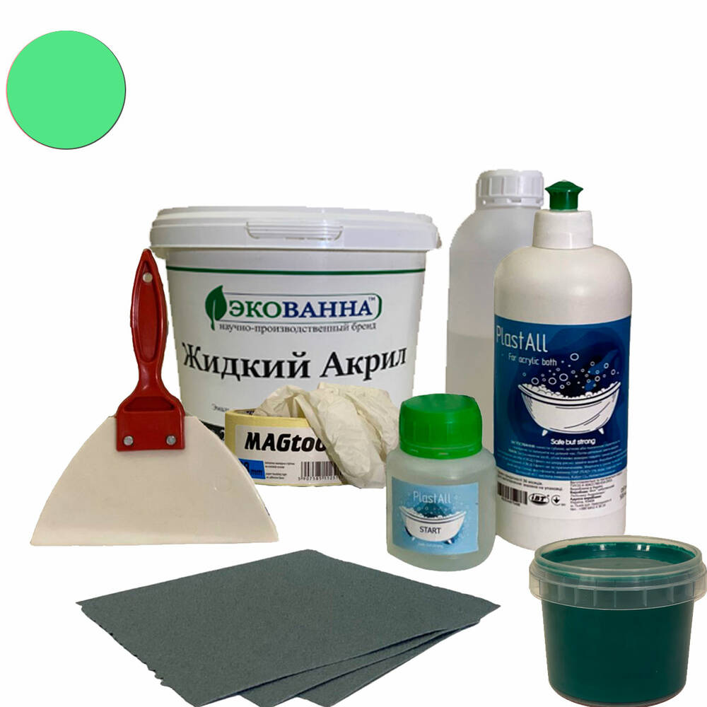 Рідкий наливний акрил ЕкоВанна для реставрації ванн комплект на ванну 1,2 м колір Зелений з набором для реставрації ванн Оригінал