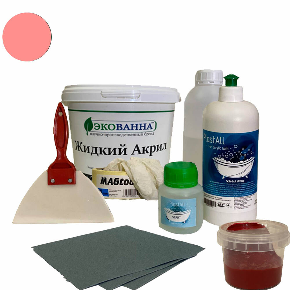 Рідкий наливний акрил ЕкоВанна для реставрації ванн комплект на ванну 1,7 м колір Червоний з набором для реставрації ванн Оригінал
