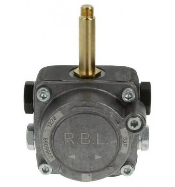 Насос Riello R.B.L. 2566059 предназначен для перекачивания жидкого топлива на горелочное устройство. Максимальное давление подачи – 15 атмосфер. Модель адаптирована для маломощных горелок Riello.