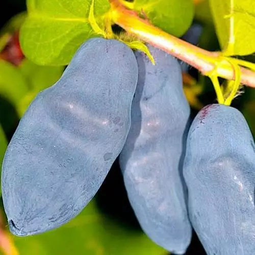 За врожайності можна цей сорт жимолості віднести до високоврожайних. Її показники коливаються від 1,8 до 3 кг. Ягода темно-синього кольору з яскраво вираженим восковим нальотом. За формою довгасті, злегка горбисті. Довжиною вони досягають 2,7 см, а вагою від 1 г до 2 г. Смак ягід у цього сорту жимолості солодкий з легкою кислинкою.