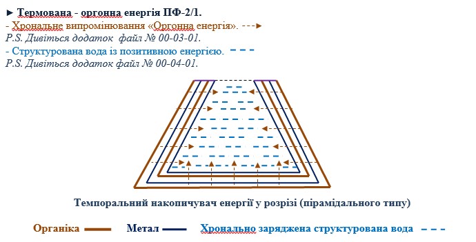 © Темпоральний накопичувач енергії – це блочно-модульний гідроакумулятор оргоновий енергії з підвищеною концентрацією хрононів у структурованій гарячій воді з позитивною енергією, яка використовується для одночасного м'якого прогрівання всіх частин тіла, при цьому даний метод має можливість покращити на порядок свої якісні показники за рахунок застосування різних натуральних препаратів на основі рослинної та мінеральної сировини та їх композицій для прийняття лікувально-профілактичних та оздоровчих термованн.