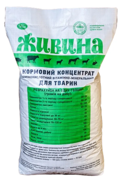 Високоефективна натуральна кормова біодобавка ЖИВИНА - амінокислотний вітамінно-мінеральний кормовий концентрат, що дозволяє швидко вирощувати тварин.