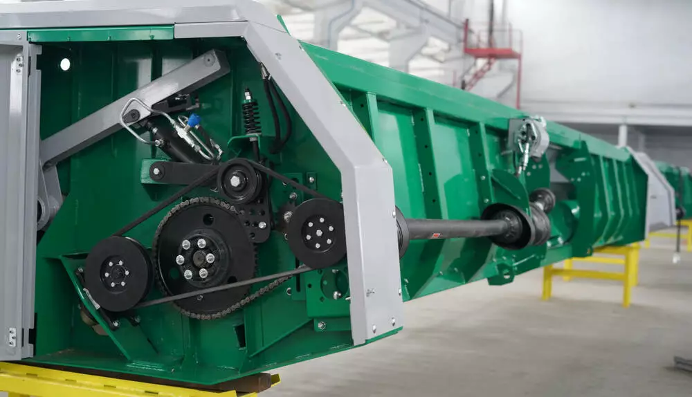 Вся система зрізу, включаючи привід, виготовлена ​​з високоякісних компонентів, всі компоненти системи зрізу, що застосовуються, виконані зі спеціальної зносостійкої сталі, що гарантує мінімальні втрати при збиранні врожаю.