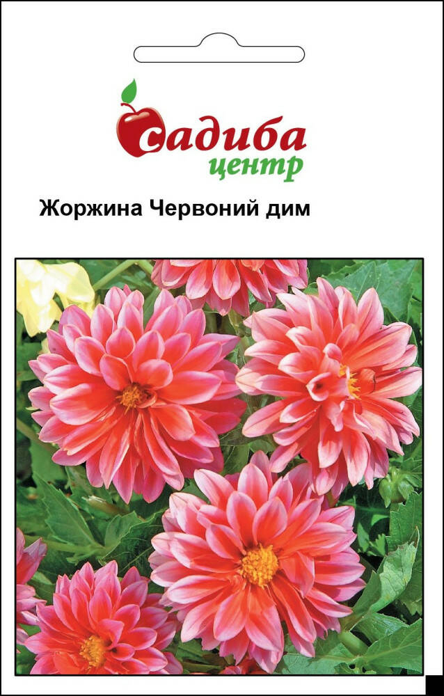 Жоржина Червоний дим – однорічна, середньоросла жоржина. Висота до 35 см, з бронзово-червоним листям і великою кількістю напівмахрових суцвіть діаметром до 10 см, помаранчевого, червоного кольорів. Щоб отримати ранні квіти, насіння висівають у лютому - квітні в парники, а у відкритий грунт - у травні. Місце виділяють сонячне, захищене від вітру, з гарною циркуляцією повітря. Цвітіння - рясне, з липня до заморозків. Рослина теплолюбна. Слід уникати низьких, заболочених ділянок. Грунти любить глибоко оброблені, родючі, добре дреновані, пухкі, з додаванням вапна. Вирощують при постійних поливах і підгодівлі. Ідеально підходить для посадок в контейнери, для оформлення бордюрів, строкатих квітників. Гармонійні посадки окремими групами і в суміші серед низькорослих квітів.