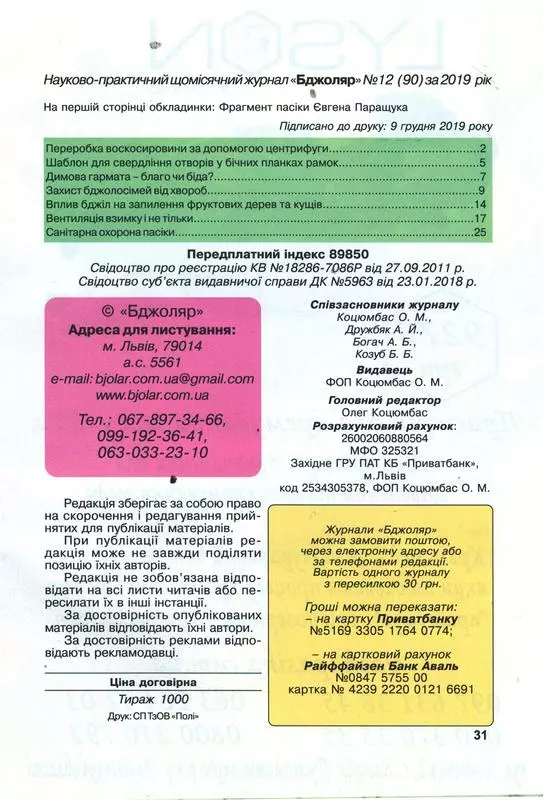 Журнал "Бджоляр" 2019 №12