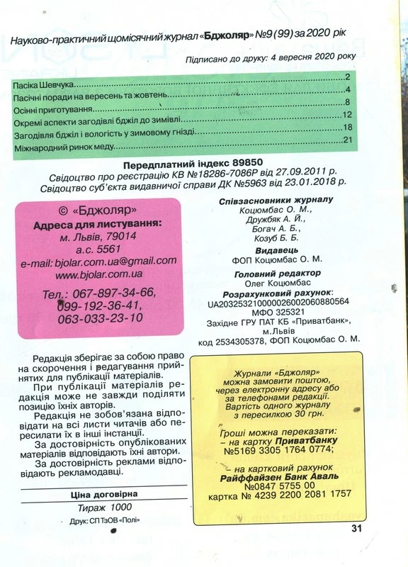 Журнал "Бджоляр" 2020 № 9