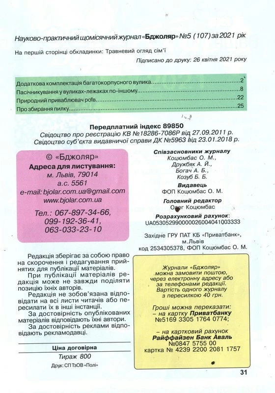 Журнал "Бджоляр" 2021 № 5