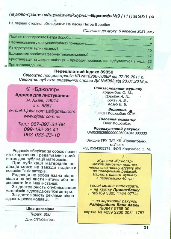 Журнал "Бджоляр" 2021 № 9