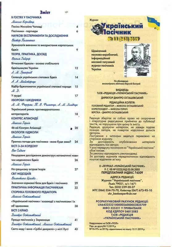 Журнал "Український пасічник" 2019 №11