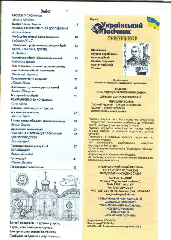 Журнал "Український пасічник" 2019 № 2