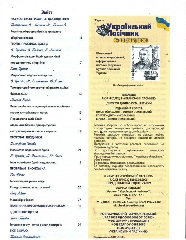 Журнал "Український пасічник" 2020 №12