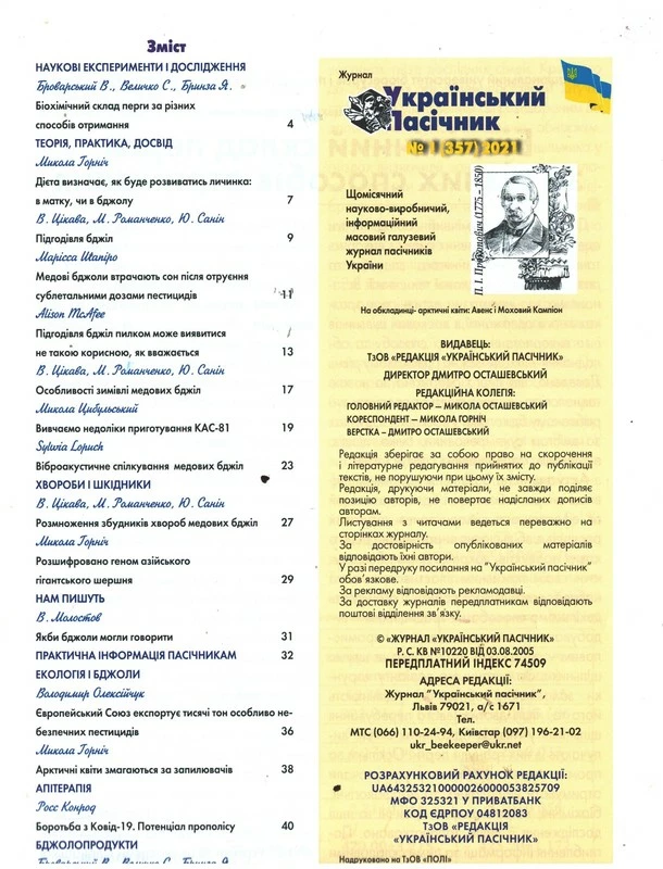 Журнал "Український пасічник" 2021 №01