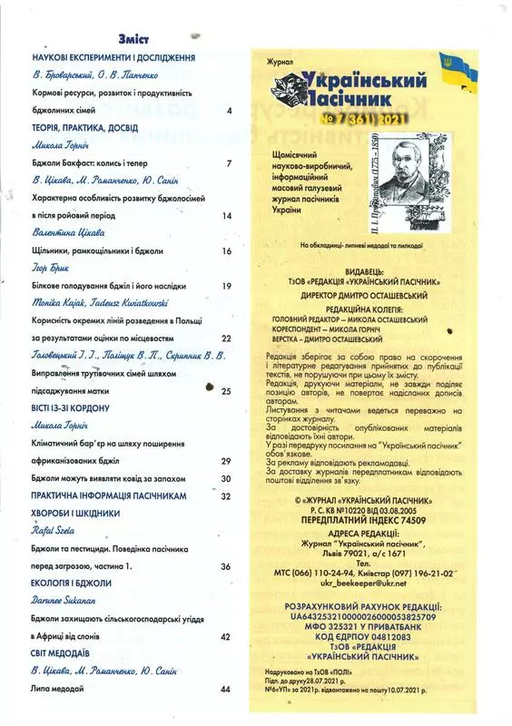 Журнал "Український пасічник" 2021 №07