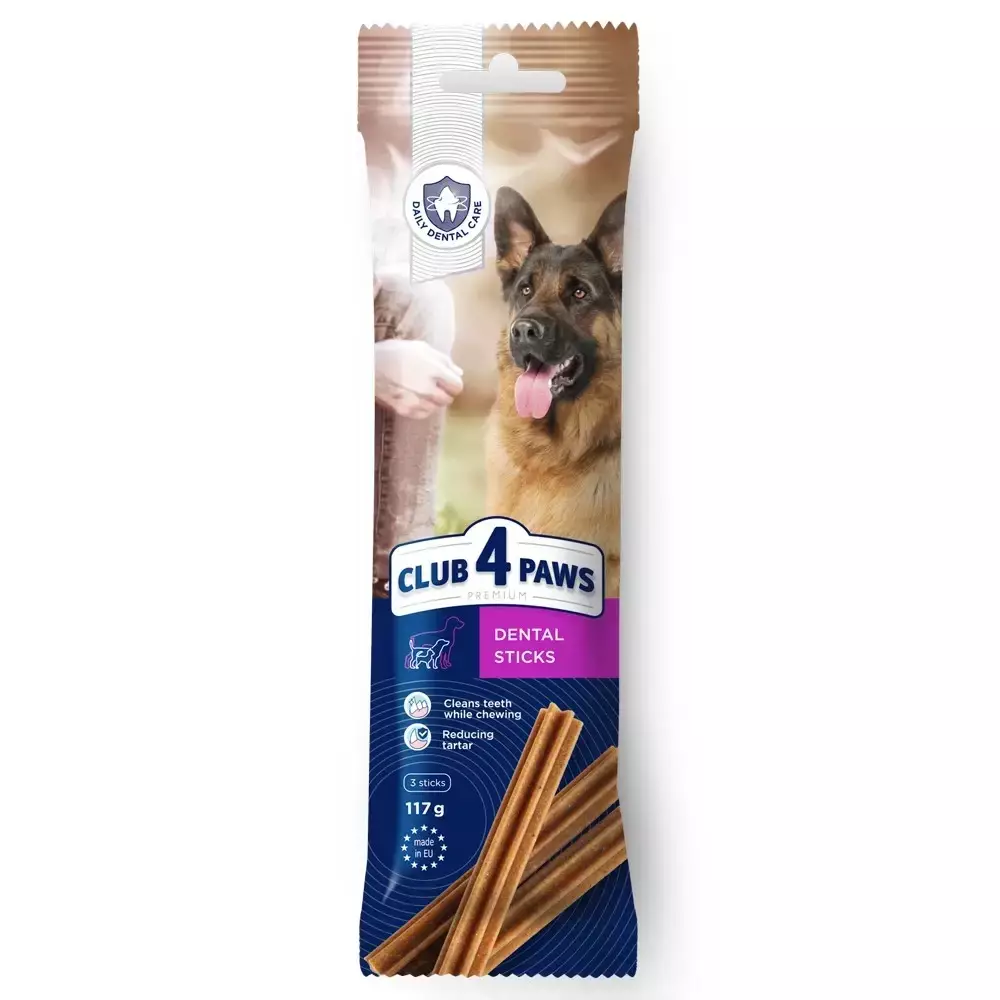 Club 4 Paws Premium Dental Sticks жувальні палички для собак, створені спеціально для дбайливих господарів та їхніх відданих чотирилапих супутників. Основна перевага паличок Дентал Стікс для собак - це здатність ефективно підтримувати гігієну і здоров'я порожнини рота тварин.