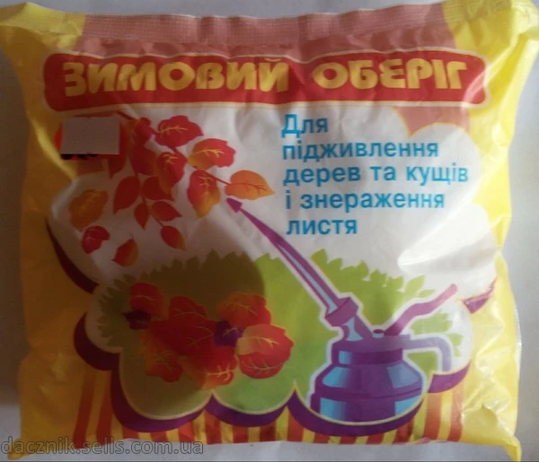 Зимовий оберіг - завдяки вдалому поєднанню трьох компонентів препорат, діє на увесь перелік зимуючих стадій шкідників в якості інсектициду, хвороб в якості фунгіциду, а також на різні види моху, грибків та ін. комплексний препарат з фунгіцидним, антисептичним і удобрюючим ефектом. Зимовий оберіг використовується для обробки усіх листяних рослин в осінній період і знезараження листя перед обпаданням.