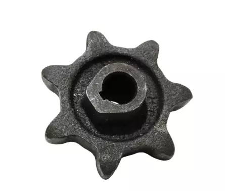 ЗВЁЗДОЧКА ВЕРХНЯЯ ВАЛА ЭЛЕВАТОРА КОЛОСОВОГО И ЗЕРНОВОГО Z=7, ДВУХСТОРОННЯЯ D=20 Н.023.204 представляет собой литую чугунную двустороннюю звездочку под 38 цепь, с количеством зубьев 7 и внутренним диаметром ступицы 20мм. Устанавливается в двух местах: