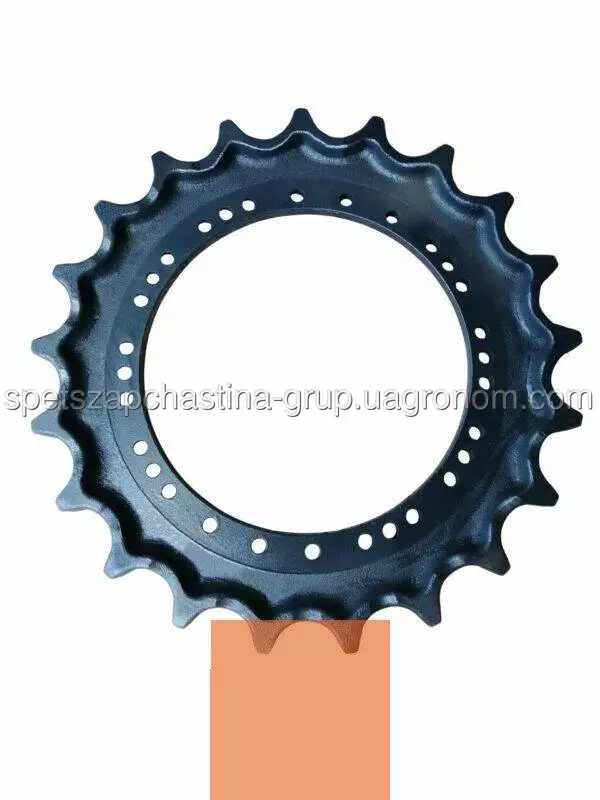 Ведуча зірочка  - це елемент гусеничного рушія, який служить для передачі моменту, що обертає, від редуктора ходу до гусениць екскаватора. Від справного стану даного вузла безпосередньо залежить ресурс пальців та втулок гусеничного ланцюга, тому при заміні ланцюгів потрібно обов'язково приділяти увагу ступеню зношування провідних зірок.