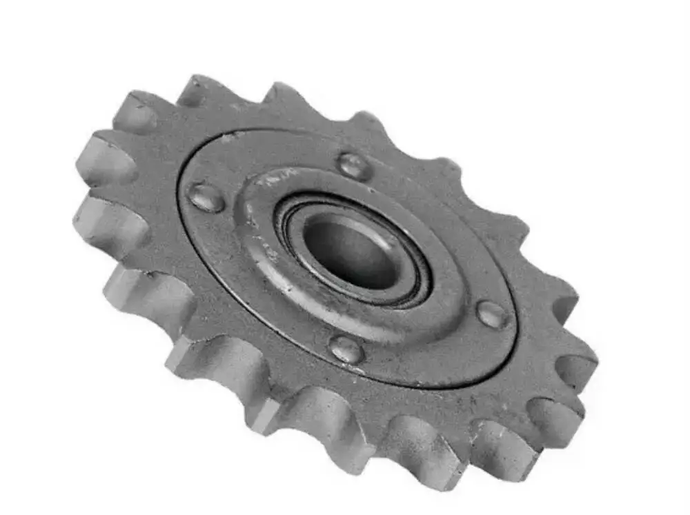 Зірочка натяжна в складі на комбайн Дон-1500. Характеристики: z-17, t-19.05, діаметр — 20 мм, підшипник — 180204, вага — 0,54 кг.