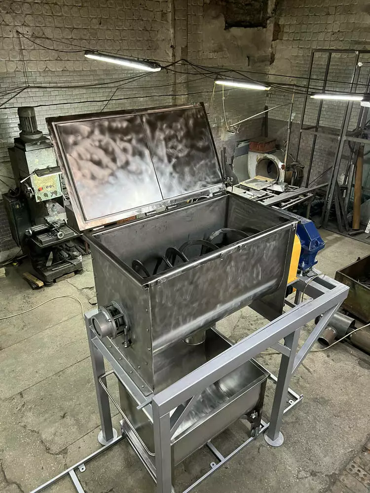 Ефективність перемішування: Спеціально розроблені лопаті та шнеки забезпечують рівномірне перемішування без утворення зон застою. Виготовляємо різні типи шнеків, стрічкові, двозонні, пелюсткові, плугові, одновальні та багато вальні.
