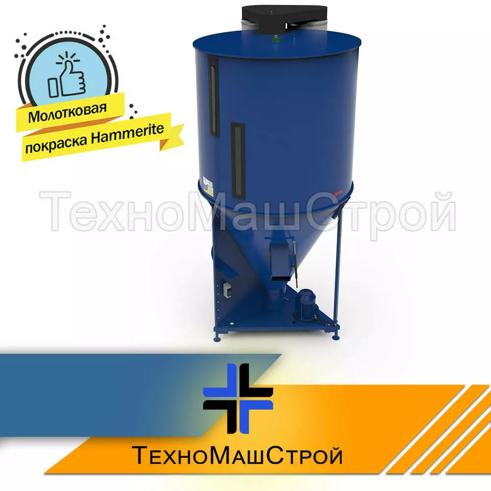 Змішувач сипучих кормів, призначений для приготування концентратів застосовуваних у тваринництві для різних груп тварин. Конструкція виробу сталевий, антикорозійний захист. Використовують для приготування сухих сумішей кормів для годування різних видів тварин. Високоякісне змішування попередньо подрібненого зерна, шроту, БМВС преміксами, концентратами, мінеральними добавками (крім рідких). Час змішування залежить від складу компонентів, що змішуються, і обсягу змішувача становить 15-20 хвилин. Даний кормозмішувач можна додатково обладнати двома видами ваг: