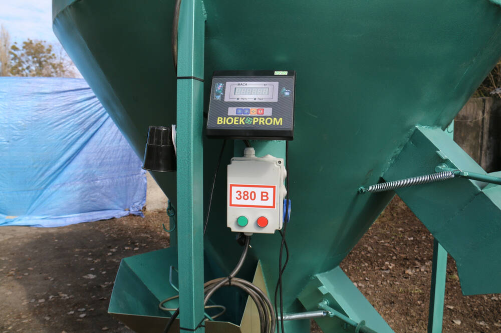 Це обладнання є продукцією ГК «Біоекопром» з унікальним дизайном та технічними рішеннями. Змішувач має строго збалансований центральний вал, підшипники захищені промисловим ущільнювачем для забезпечення тривалого терміну служби. Змішувач може перемішувати однорідні суміші об'ємом до 10 тонн, завдяки системі подвійного змішування. Змішувач може працювати один або в парі з молотковим подрібнювачем, електронними вагами і гвинтовими шнеками, що подають і вивантажують сировину.