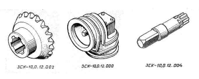 • шліцьовий — є посадковим місцем для конічної шестерні ЗСК-10.012.002.