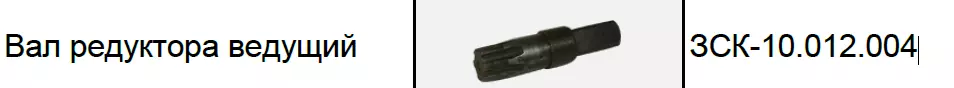 ЗСК-10.012.004 є провідним валом у складі редукторів ЗСК-10.012.000 і ЗСК-10.014.000, що встановлюються на завантажувачі сухих кормів ЗСК-10, ЗСК-20 і ЗСК-15. Вал ЗСК-10.012.004 призначений для передавання обертання від шнеків до конічних шестерень редуктора.