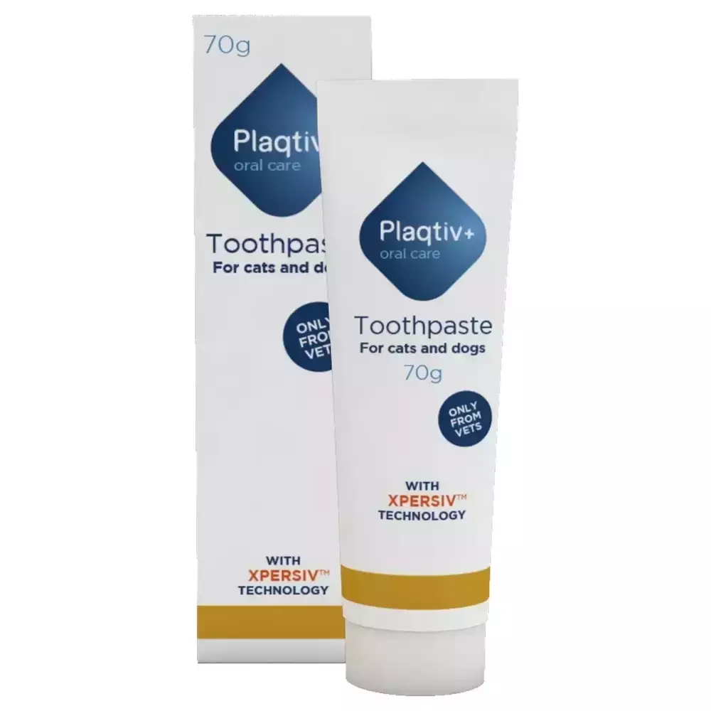 Зубна паста Plaqtiv+ для котів і собак - це простий і зручний метод підтримки чистоти та свіжості ротової порожнини вашого вихованця. Зубна паста з солодовим смаком може використовуватися якомога частіше вашим вихованцем, оскільки містить запатентовану технологію Xpersiv, яка нейтралізує специфічні мінерали в ротовій порожнині перш, ніж вони встигають перетворити зубний наліт у зубний камінь.