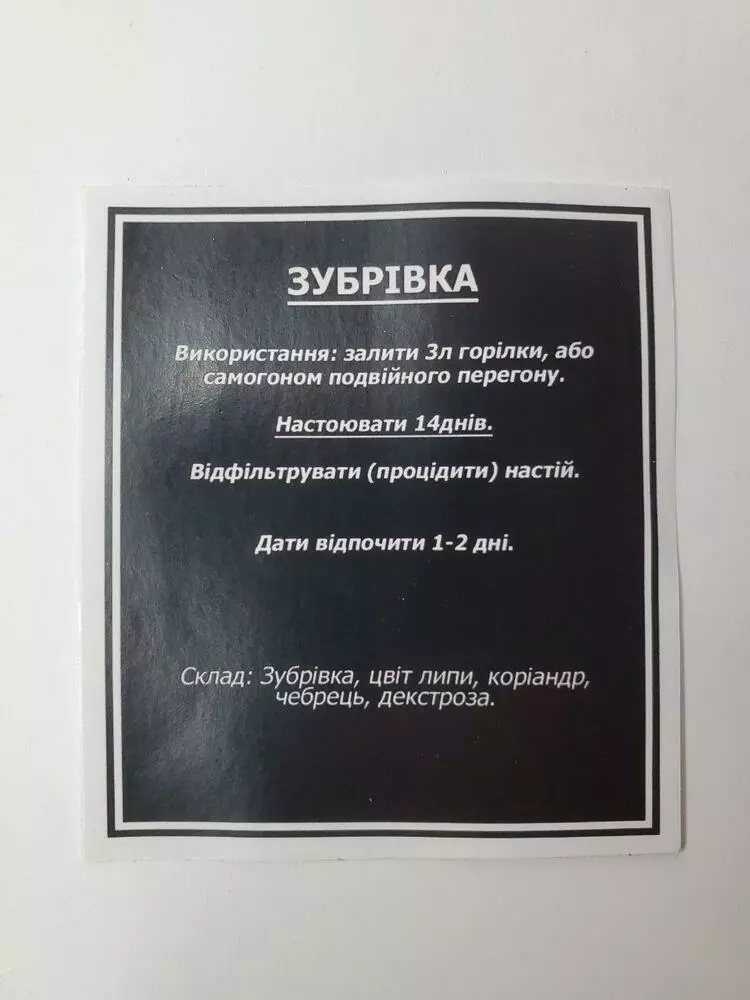 Склад: зубрівка, цвіт липи, коріандр, чебрець, декстроза