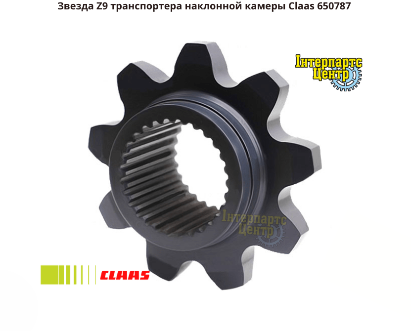 Зірочка похилої камери з 9 зубами (z9) та внутрішнім діаметром 60 мм. Приводить у дію транспортер похилої камери в комбайнах CLAAS серії COMMANDOR, DOMINATOR, MEDION, MEGA.