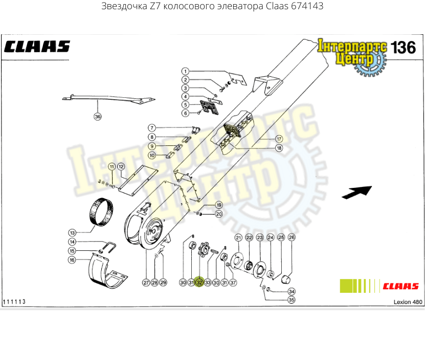 Зірочка ланцюга елеватора з 7 зубцями зернозбиральних комбайнах CLAAS серій COMMANDOR, DOMINATOR, LEXION, MEDION, MEGA. Розміри: Z7, d30.