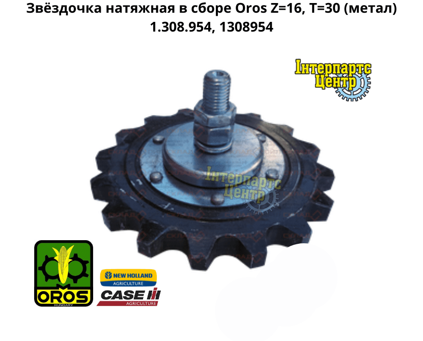 Зірочка натяжна у зборі Oros (металічна) Z=16, T=30. Зірочка кукурудзяної жниварки Oros, у зборі. Застосовується в комбайнах Case IH, New Holland, кукурудзяна жниварка Oros HSA.