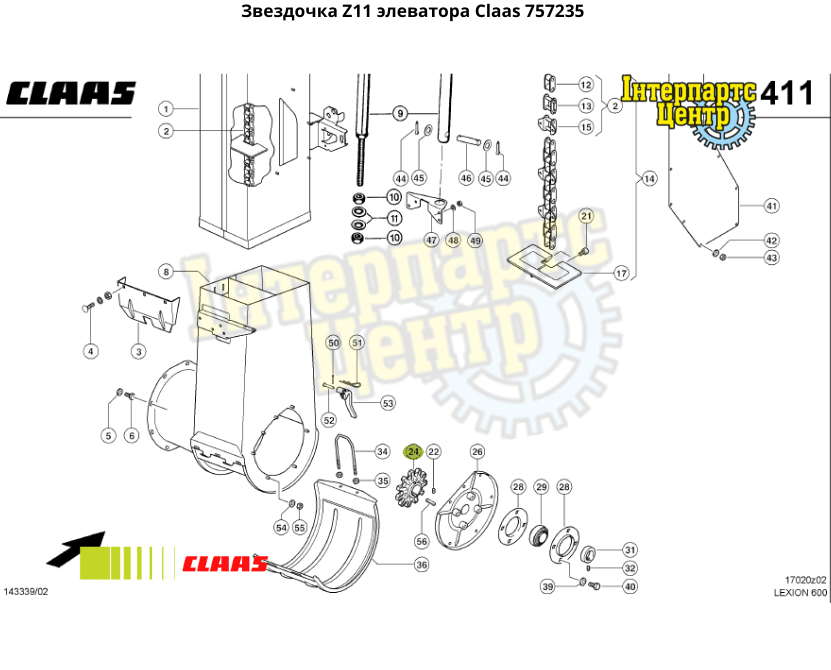 Зірочка Z11 елеватора Claas 757235, 7572352, 000757235, 757235.2, 0007572352