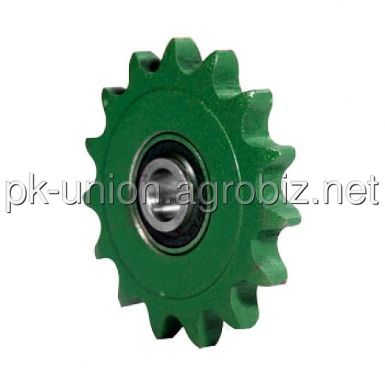 Зірочка натяжного пристрою,встановлюється на техніці John Deere CTS, 6622, 9400, 9410, 9450, 9500, 9500SH, 9501, 9510, 9550, 9550SH, 9 5 , 9650, 9650CTS, 9650STS, New Holland. Кількість зубів-z=15, крок ланцюга-t=19,05.