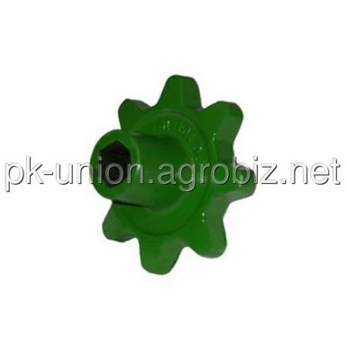 Зірочка верхня привода ланцюга колосового елеватора, встановлюється на комбайнах John Deere CTS, CTS II, 9400, 9410, 9500, 9500SH, 9501, 9510, 9510SH, 9650, 9650, 9650 , 9610, 9550SH, 9560SH, 9650. Кількість зубів z=8